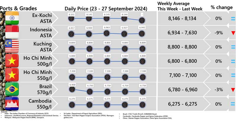 IPC DOES NOT set the price of pepper; IPC only publishes the prevailing price of pepper as reported from various origins and sources. Some of the data in this publication are from the IPC Secretariat database. The data were obtained from the official reports and correspondence between the IPC and has been processed based on statistical norms that can be accounted for.