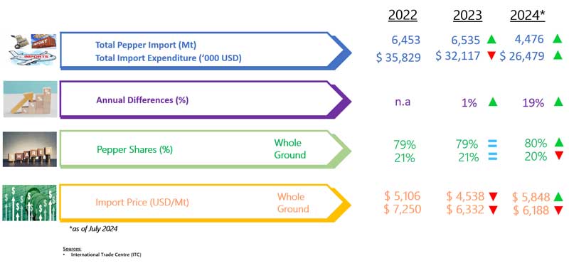 IMPORT OF PEPPER BY THAILAND (2022 - 2024)