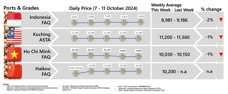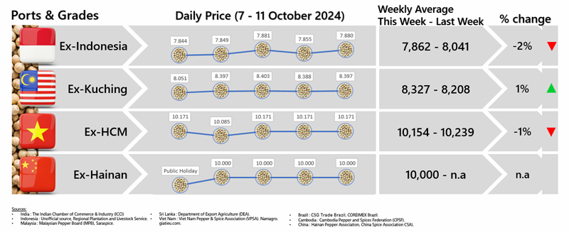 - Producers\' prices ex Kuching are the average prices offered by local traders to farmers for unprocessed pepper - grade 1