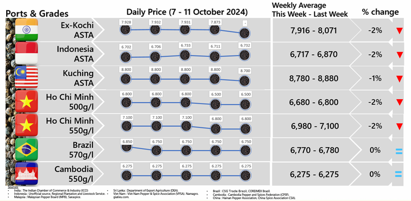 - Producers\' price ex Ho Chi Minh City is prices for local purchases of pepper (500 g/l for black and 630g/l for white)