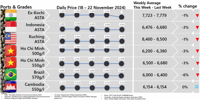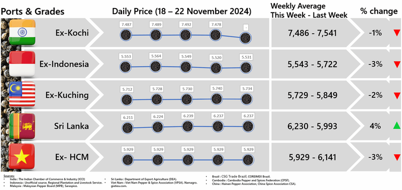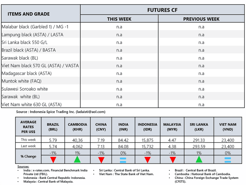 IPC DOES NOT set the price of pepper; IPC only publishes the prevailing price of pepper as reported from various origins and sources. Some of the data in this publication are from the IPC Secretariat database. The data were obtained from the official reports and correspondence between the IPC and has been processed based on statistical norms that can be accounted for.