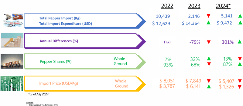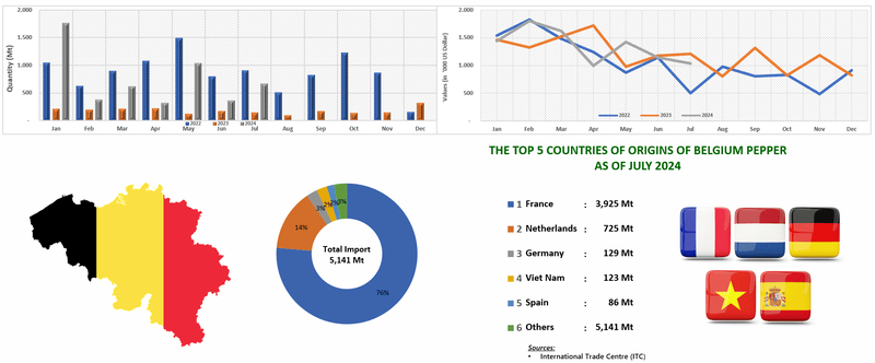 IMPORT OF PEPPER BY BELGIUM (2022 - 2024)
