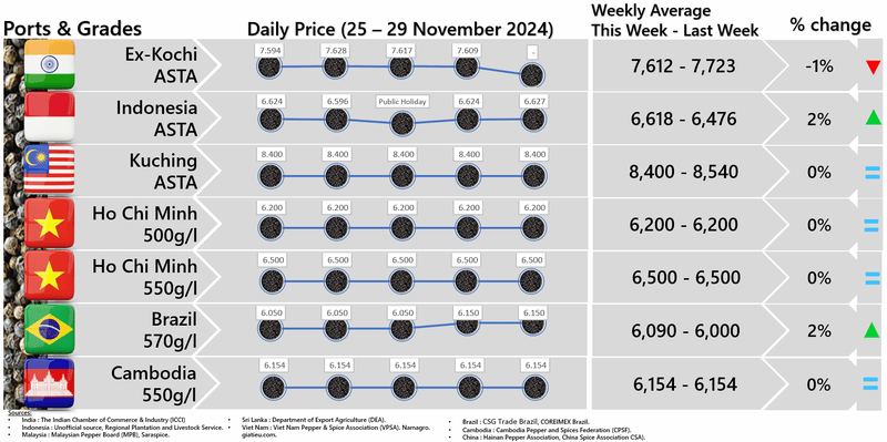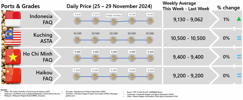 IPC DOES NOT set the price of pepper; IPC only publishes the prevailing price of pepper as reported from various origins and sources. Some of the data in this publication are from the IPC Secretariat database. The data were obtained from the official reports and correspondence between the IPC and has been processed based on statistical norms that can be accounted for.
