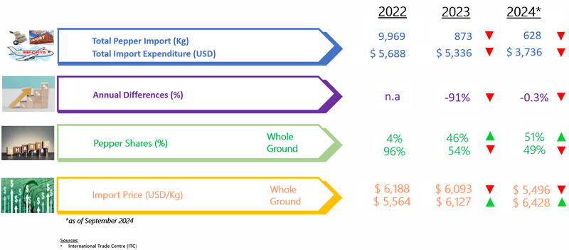 IMPORT OF PEPPER BY HONG KONG (2022 - 2024)