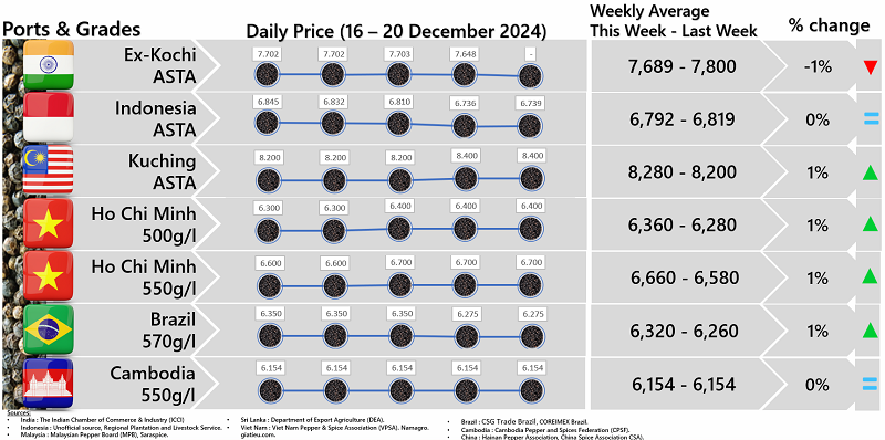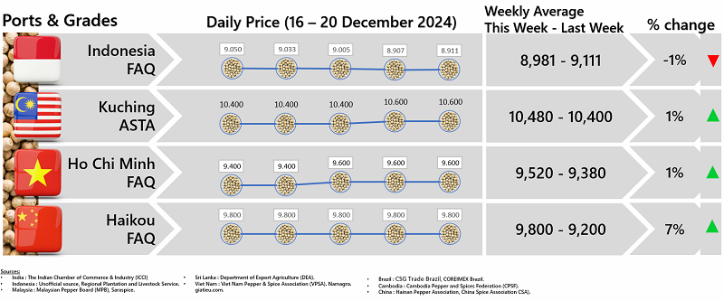 IPC DOES NOT set the price of pepper; IPC only publishes the prevailing price of pepper as reported from various origins and sources. Some of the data in this publication are from the IPC Secretariat database. The data were obtained from the official reports and correspondence between the IPC and has been processed based on statistical norms that can be accounted for.