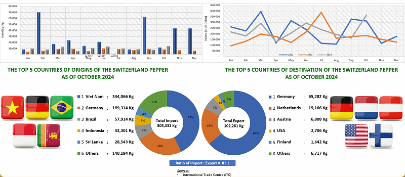 EXPORT OF PEPPER BY SWITZERLAND (2022 - 2024)