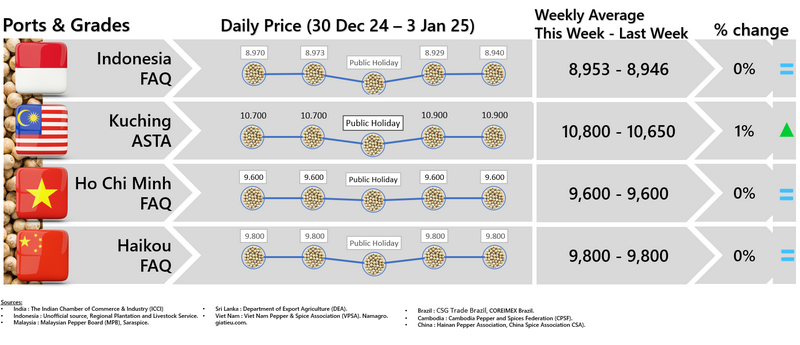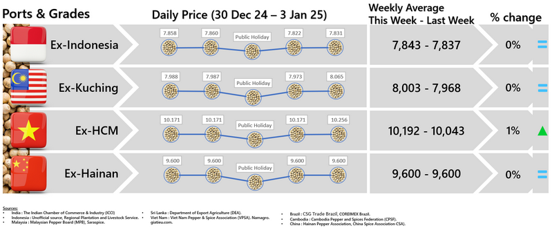 IPC DOES NOT set the price of pepper; IPC only publishes the prevailing price of pepper as reported from various origins and sources. Some of the data in this publication are from the IPC Secretariat database. The data were obtained from the official reports and correspondence between the IPC and has been processed based on statistical norms that can be accounted for.