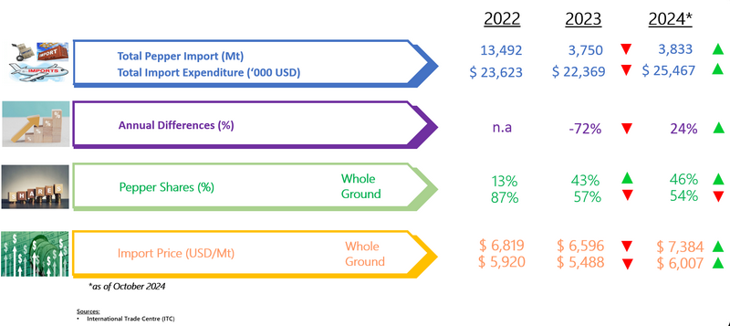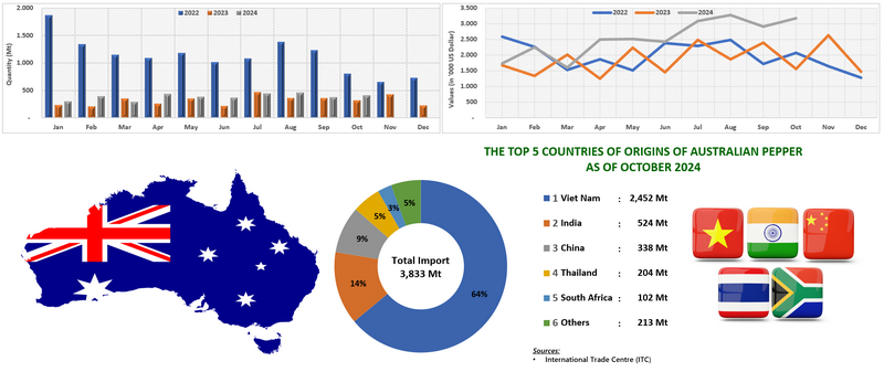 IMPORT OF PEPPER BY AUSTRALIA (2022 - 2024)