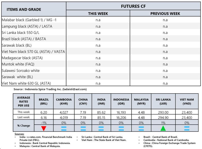 - Producers\' prices ex Lampung and Pangkal Pinang are average prices received by farmers for unprocessed pepper