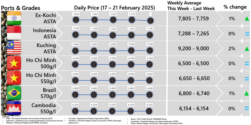 IPC DOES NOT set the price of pepper; IPC only publishes the prevailing price of pepper as reported from various origins and sources. Some of the data in this publication are from the IPC Secretariat database. The data were obtained from the official reports and correspondence between the IPC and has been processed based on statistical norms that can be accounted for.