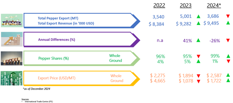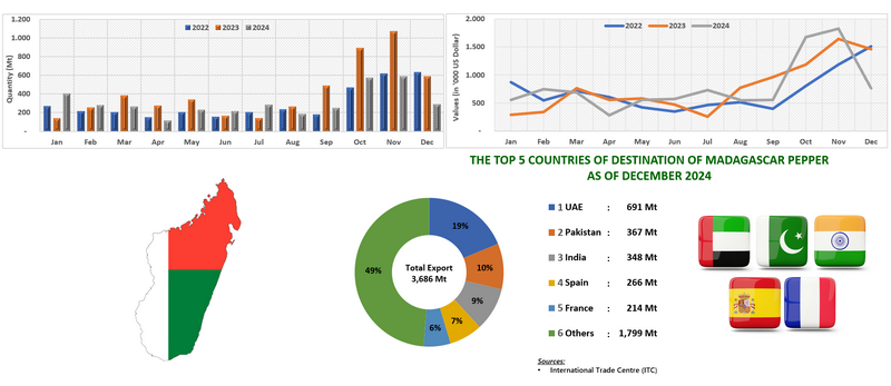 EXPORT OF PEPPER BY MADAGASCAR (2022 - 2024)