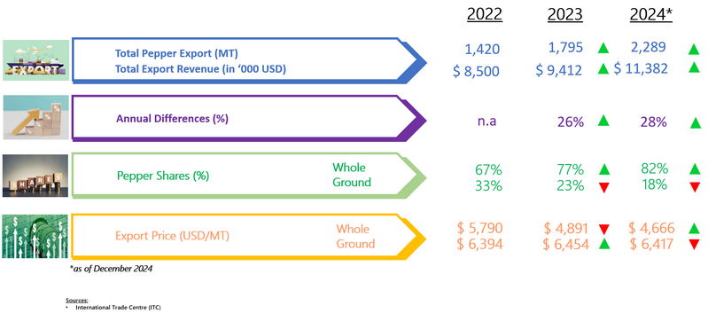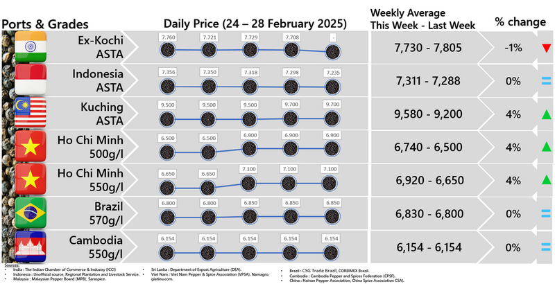 IPC DOES NOT set the price of pepper; IPC only publishes the prevailing price of pepper as reported from various origins and sources. Some of the data in this publication are from the IPC Secretariat database. The data were obtained from the official reports and correspondence between the IPC and has been processed based on statistical norms that can be accounted for.