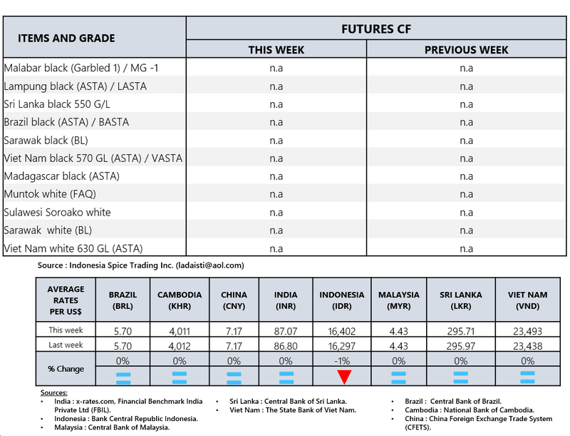 - Producers\' prices ex Lampung and Pangkal Pinang are average prices received by farmers for unprocessed pepper