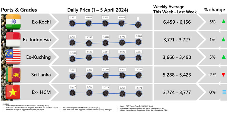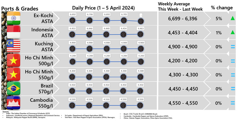 - Producers\\\' prices ex Lampung and Pangkal Pinang are average prices received by farmers for unprocessed pepper