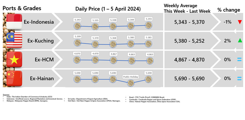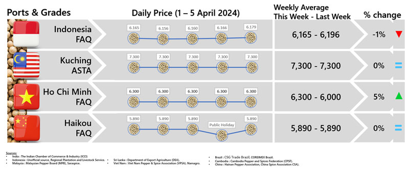 - Producers\\\' price ex Ho Chi Minh City is prices for local purchases of pepper (500 g/l for black and 630g/l for white)