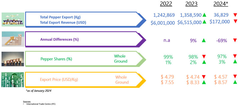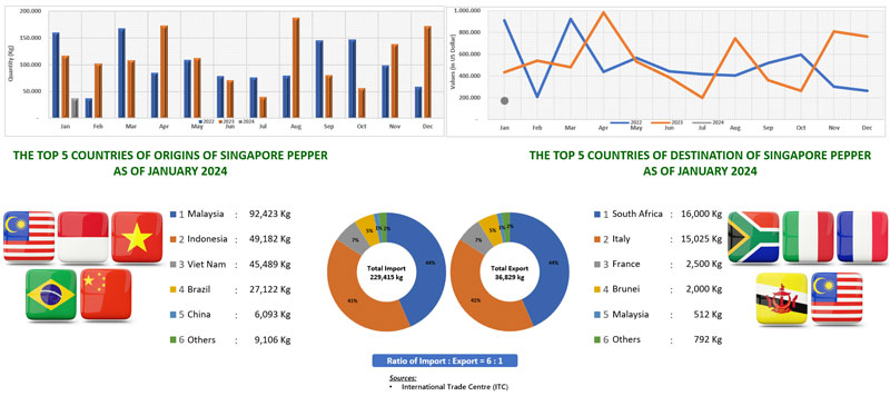 EXPORT OF PEPPER BY SINGAPORE (2021 - 2023)