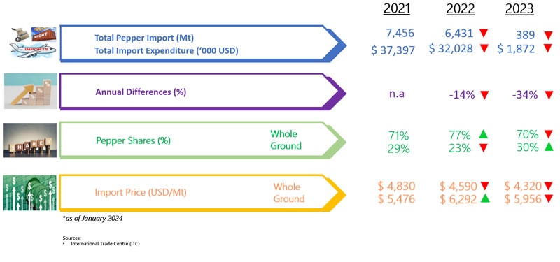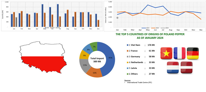 IMPORT OF PEPPER BY POLAND (2022 - 2024)