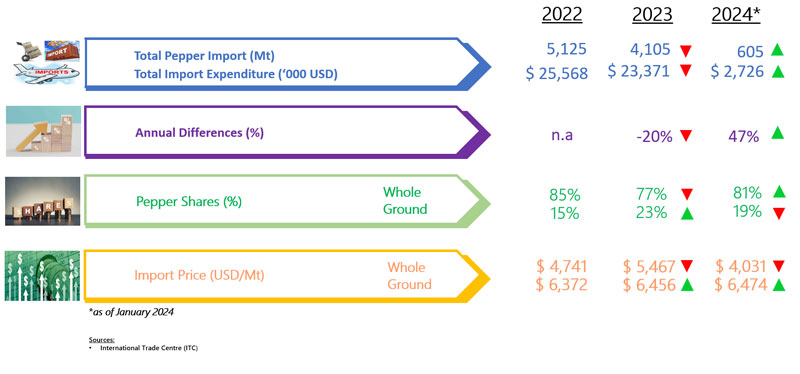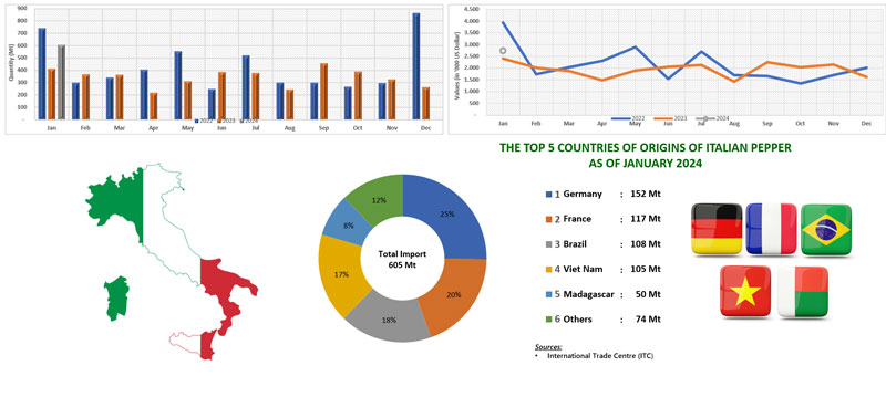 IMPORT OF PEPPER BY ITALY (2022 - 2024)