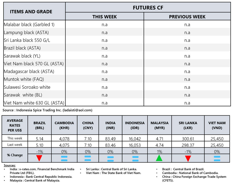 - Producers\' prices ex Lampung and Pangkal Pinang are average prices received by farmers for unprocessed pepper