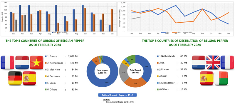 EXPORT OF PEPPER BY BELGIUM (2022 - 2024)