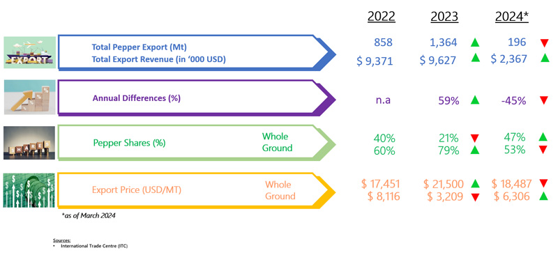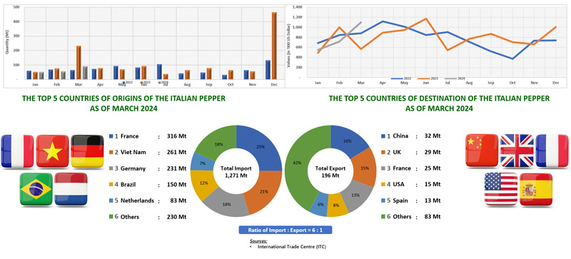 EXPORT OF PEPPER BY ITALY (2022 - 2024)