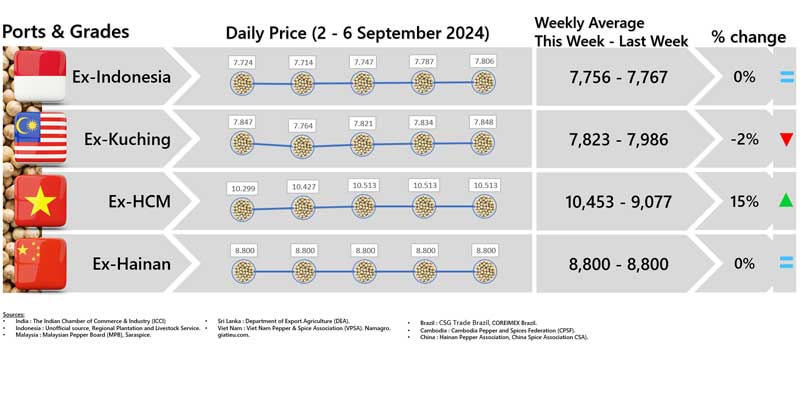 IPC DOES NOT set the price of pepper; IPC only publishes the prevailing price of pepper as reported from various origins and sources. Some of the data in this publication are from the IPC Secretariat database. The data were obtained from the official reports and correspondence between the IPC and has been processed based on statistical norms that can be accounted for.