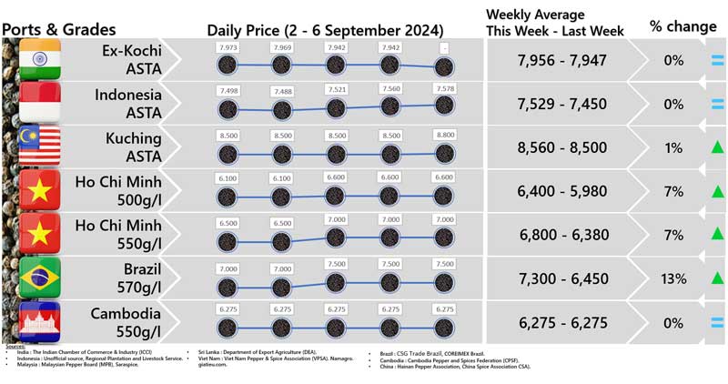 - Producers\\\' price ex Ho Chi Minh City is prices for local purchases of pepper (500 g/l for black and 630g/l for white)