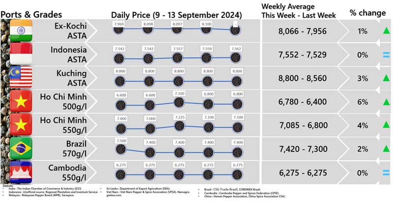 IPC DOES NOT set the price of pepper; IPC only publishes the prevailing price of pepper as reported from various origins and sources. Some of the data in this publication are from the IPC Secretariat database. The data were obtained from the official reports and correspondence between the IPC and has been processed based on statistical norms that can be accounted for.