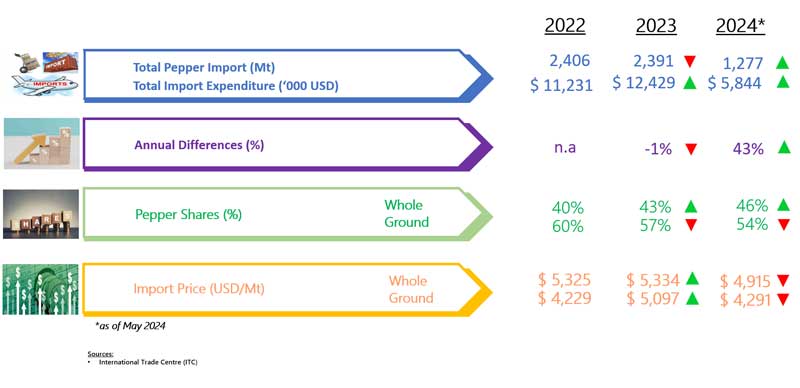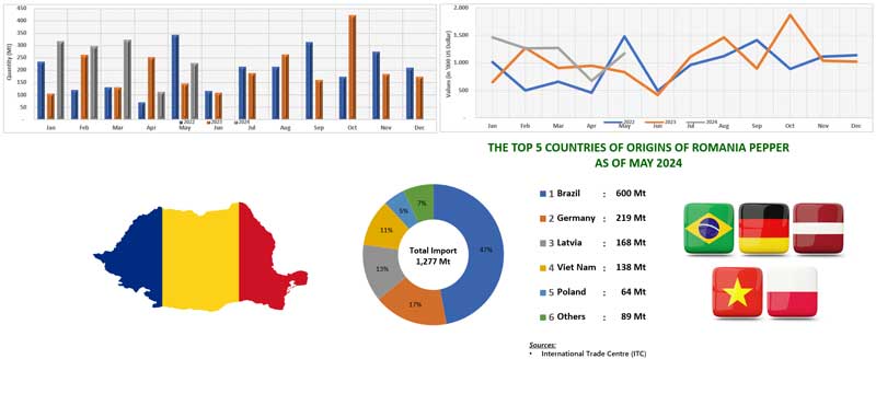 IMPORT OF PEPPER BY RUMANIA (2022 - 2024)