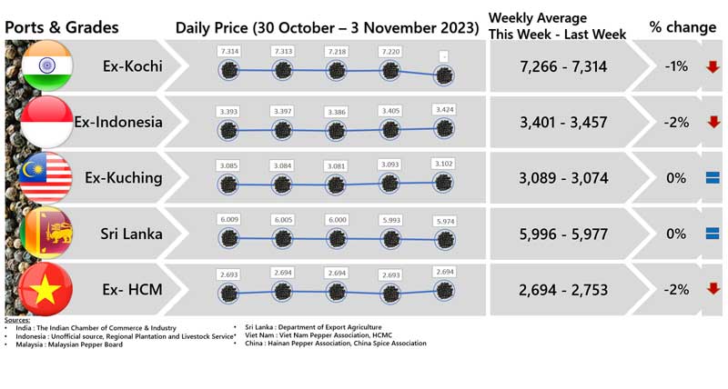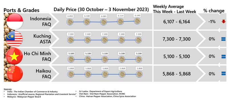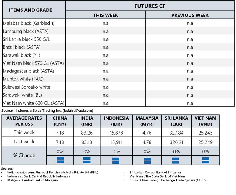 - Producers\' prices ex Lampung and Pangkal Pinang are average prices received by farmers for unprocessed pepper