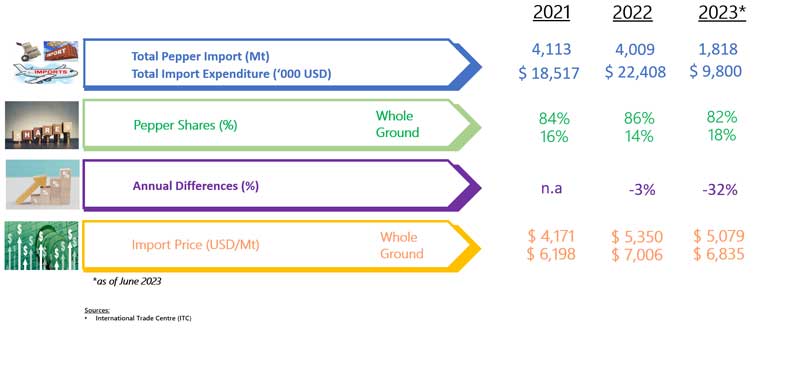IMPORT OF PEPPER BY AUSTRIA (2021 - 2023)