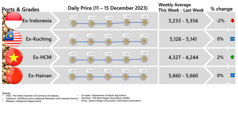 - Producers\' price ex Ho Chi Minh City is prices for local purchases of pepper (500 g/l for black and 630g/l for white)
