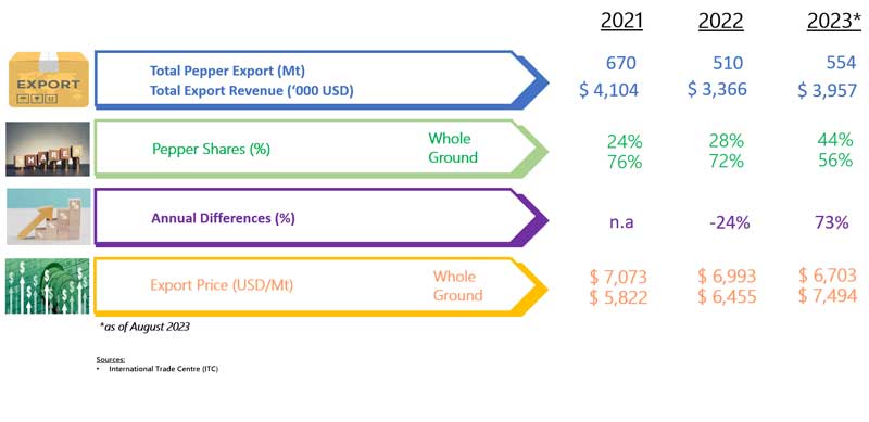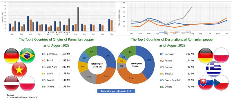 EXPORT OF PEPPER BY ROMANIA (2021 - 2023)