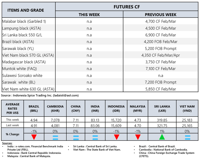 - Producers\\\' prices ex Lampung and Pangkal Pinang are average prices received by farmers for unprocessed pepper