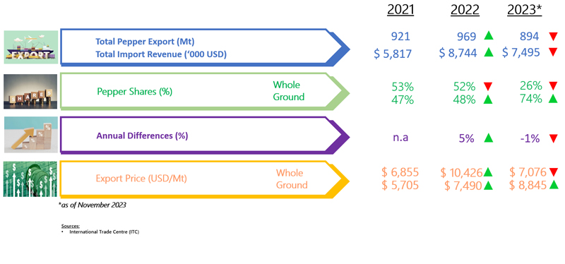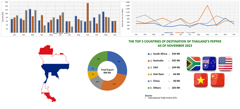 EXPORT OF PEPPER BY THAILAND (2021 - 2023)