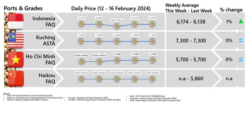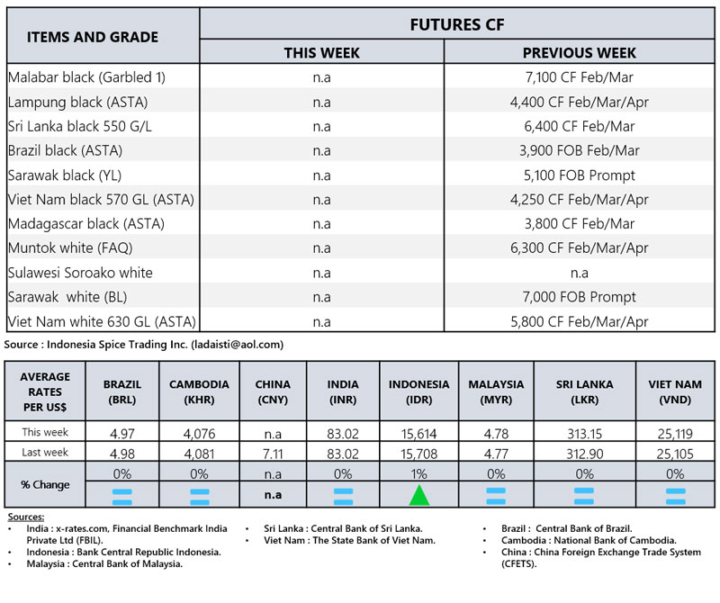 - Producers' prices ex Lampung and Pangkal Pinang are average prices received by farmers for unprocessed pepper