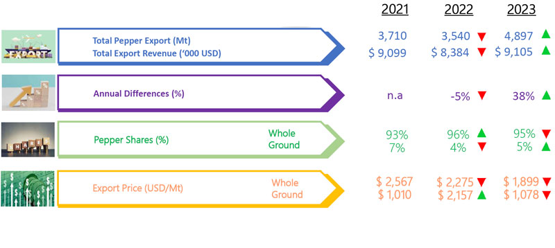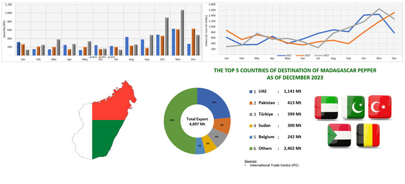 EXPORT OF PEPPER BY MADAGASCAR (2021 - 2023)