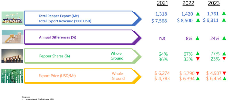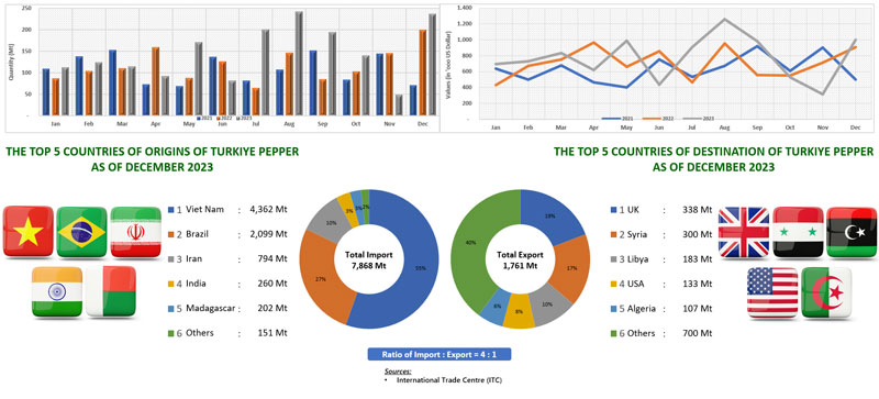 EXPORT OF PEPPER BY TURKIYE (2021 - 2023)