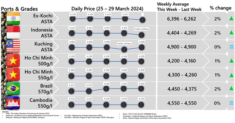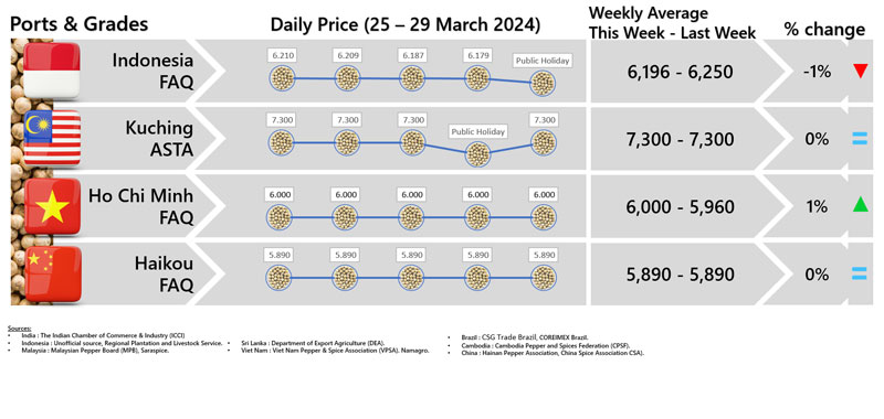 - Producers\\\' prices ex Lampung and Pangkal Pinang are average prices received by farmers for unprocessed pepper