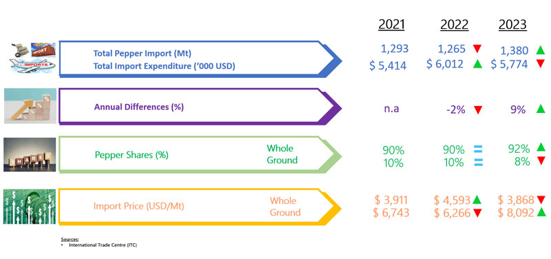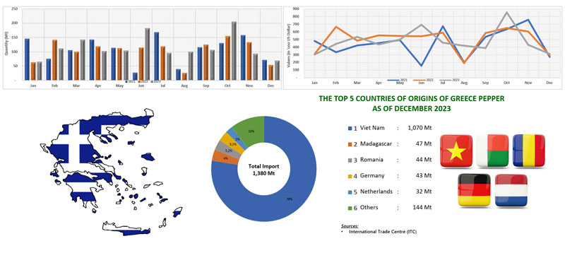 IMPORT OF PEPPER BY GREECE (2021 - 2023)