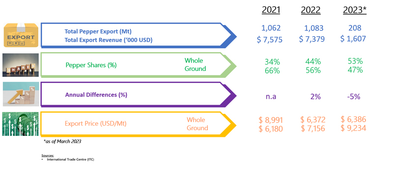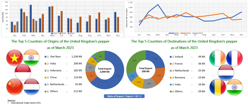EXPORT OF PEPPER BY THE UNITED KINGDOM (2021 - 2023)