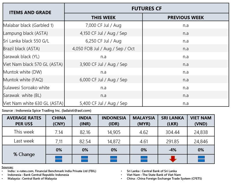 FOB PRICE WHITE PEPPER - in US $/Mt