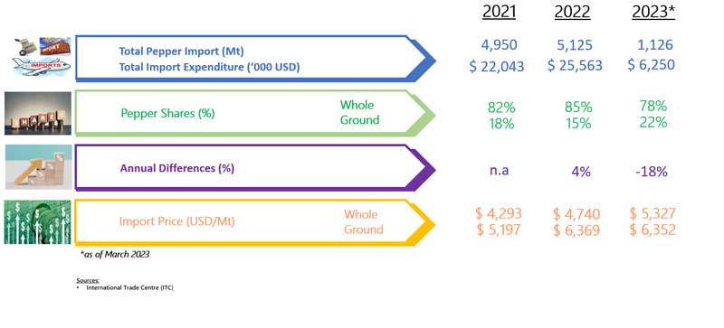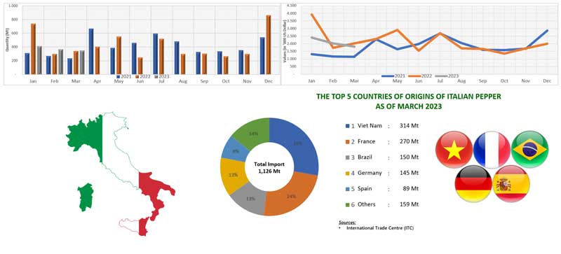 IMPORT OF PEPPER BY ITALY (2021 - 2023)