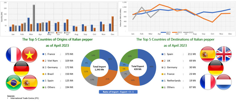EXPORT OF PEPPER BY ITALYÂ (2021 - 2023)