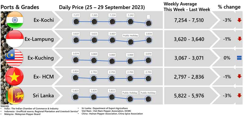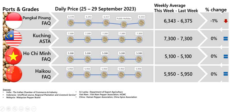 - Producers\\\' prices ex Lampung and Pangkal Pinang are average prices received by farmers for unprocessed pepper