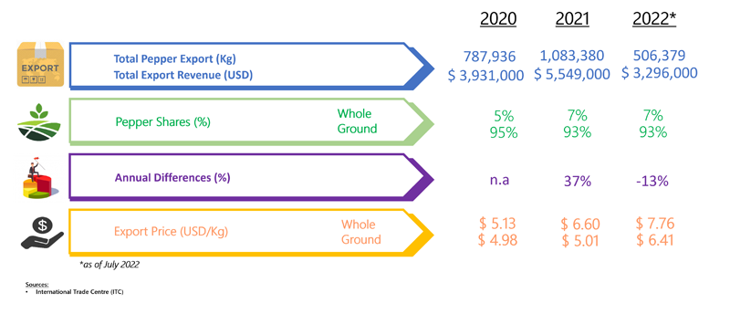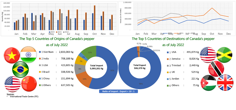 EXPORT OF PEPPER BY CANADA (2020 - 2022)