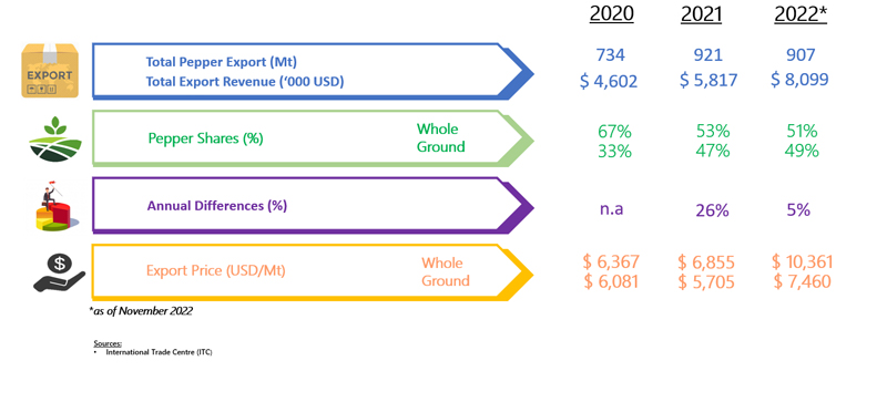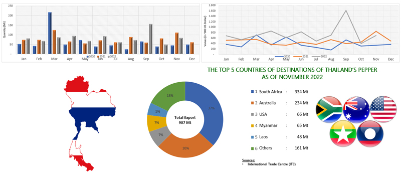 EXPORT OF PEPPER BY THAILAND (2020 - 2022)