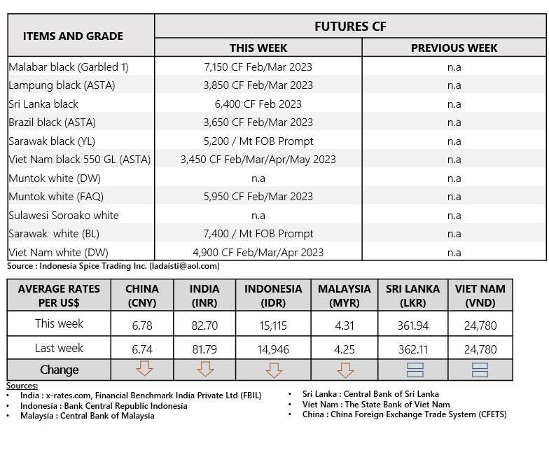 FOB PRICE WHITE PEPPER - in US $/Mt