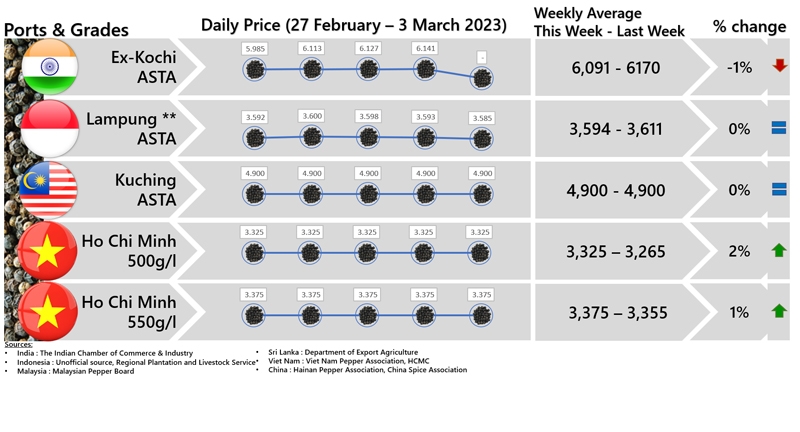 FOB PRICE BLACK PEPPER - in US$/Mt