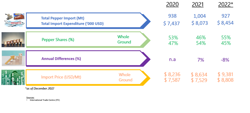EXPORT OF PEPPER BY SOUTH AFRICA (2020 - 2022)